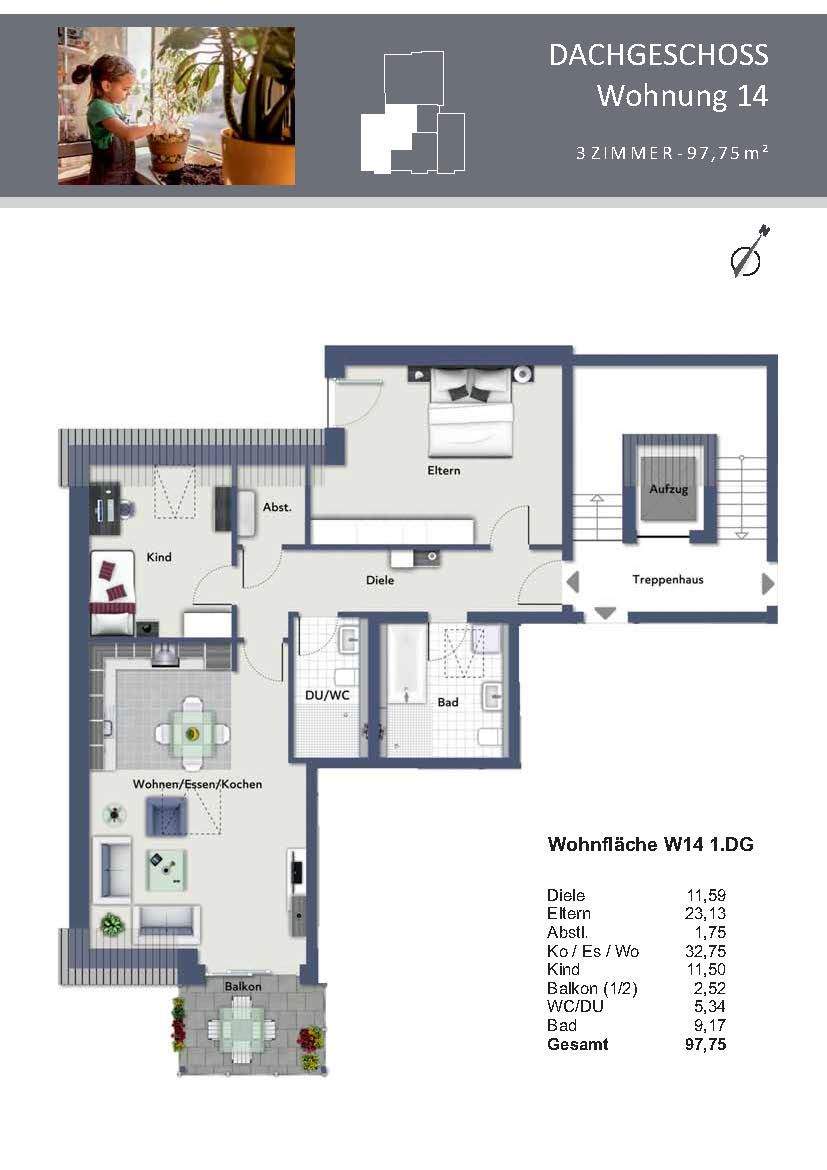 Wohnbeispiel W14 Richtung Süden -