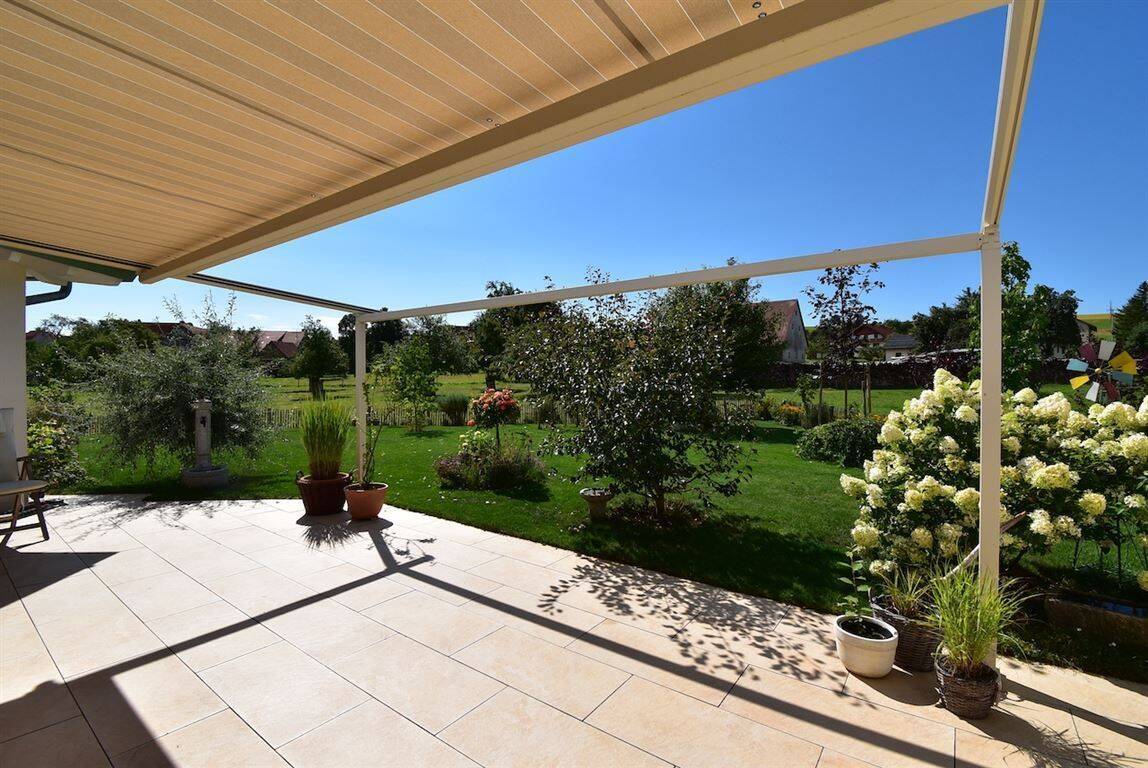 Terrasse mit Pergolamarkise - Wunderbare Aussichten... schicke moderne Bungalow-Wohnebene in Top-Ausstattung!