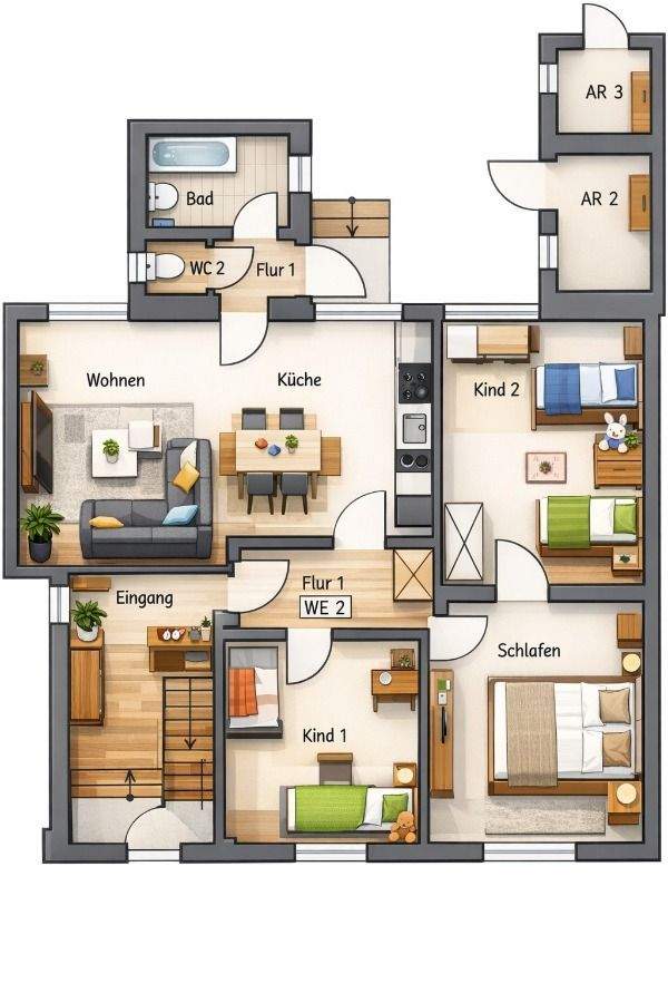 • MustergrundrissOG4ZimmerKDBGästeWC -