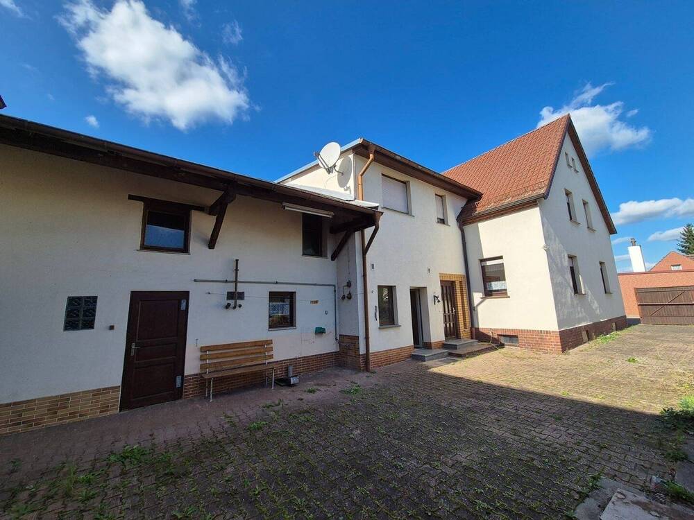 • Hofansicht mit Waschküche und Schuppen - 5 Zimmer Doppelhaushälfte in Laußig
