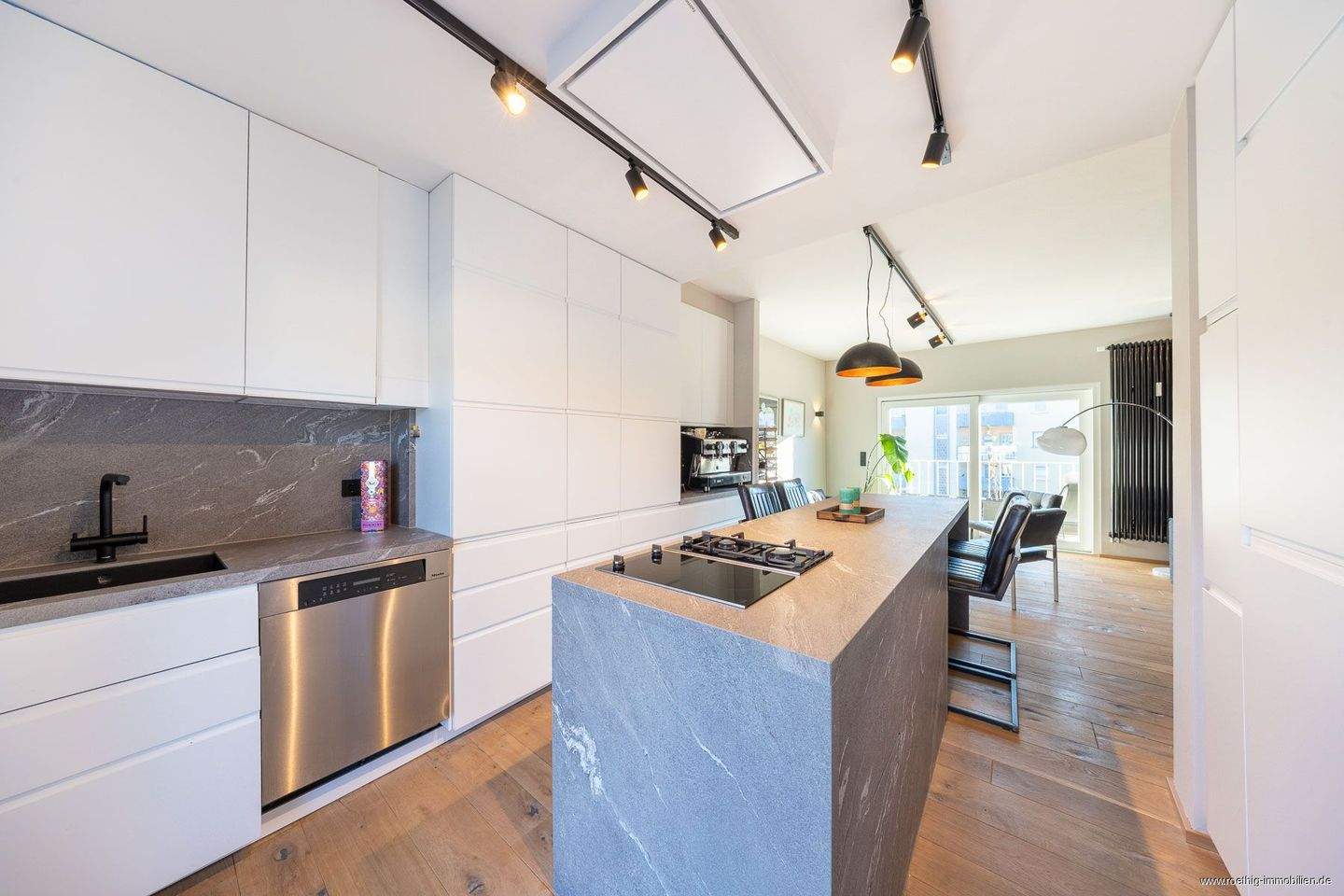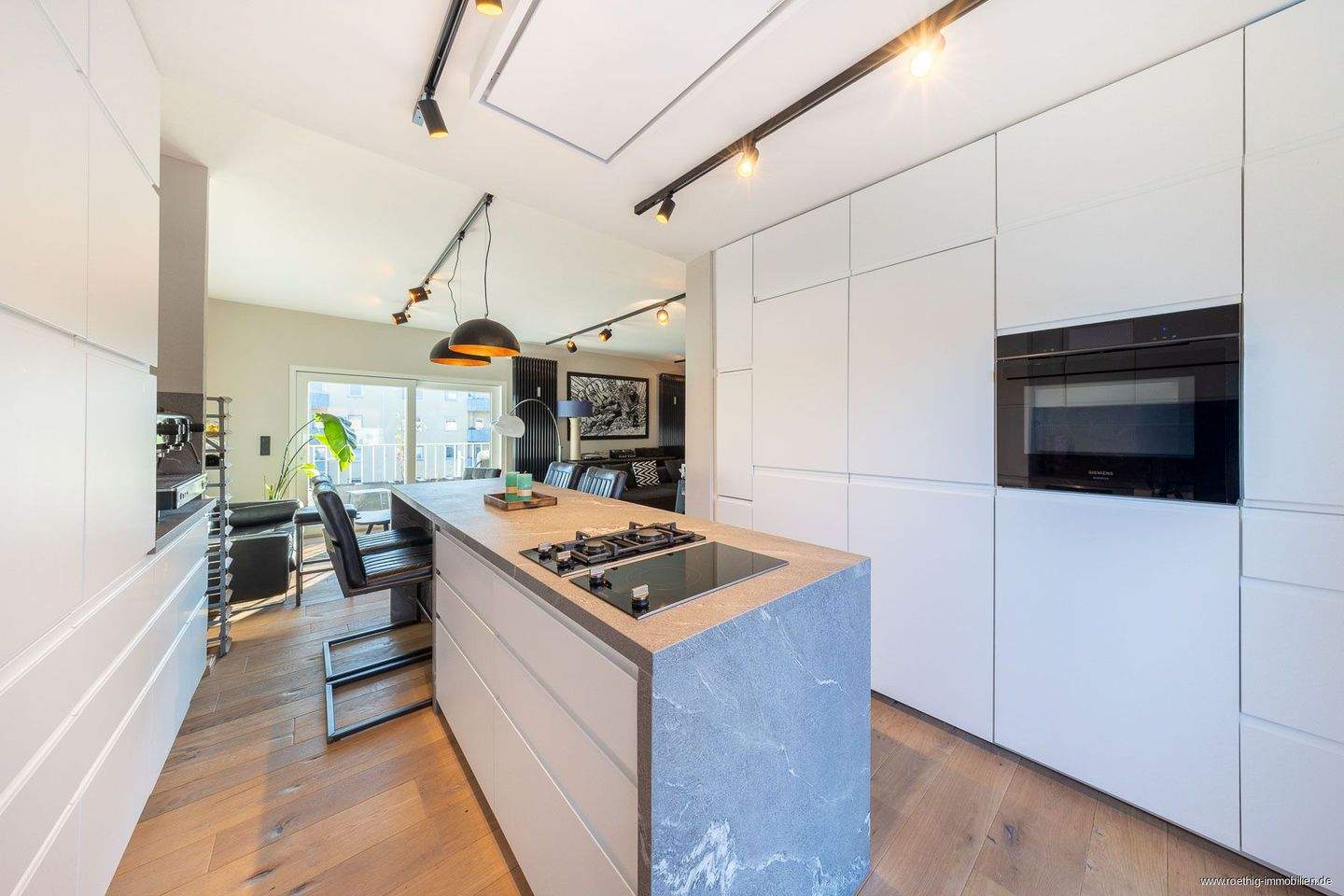 Blick in den Wohnbereich - Exklusives 4,5-Zimmer-Penthouse über den Dächern Schwabings - moderne Ausstattung, zwei Einzelgaragen, drei traumhafte Dachterrassen & private Sauna