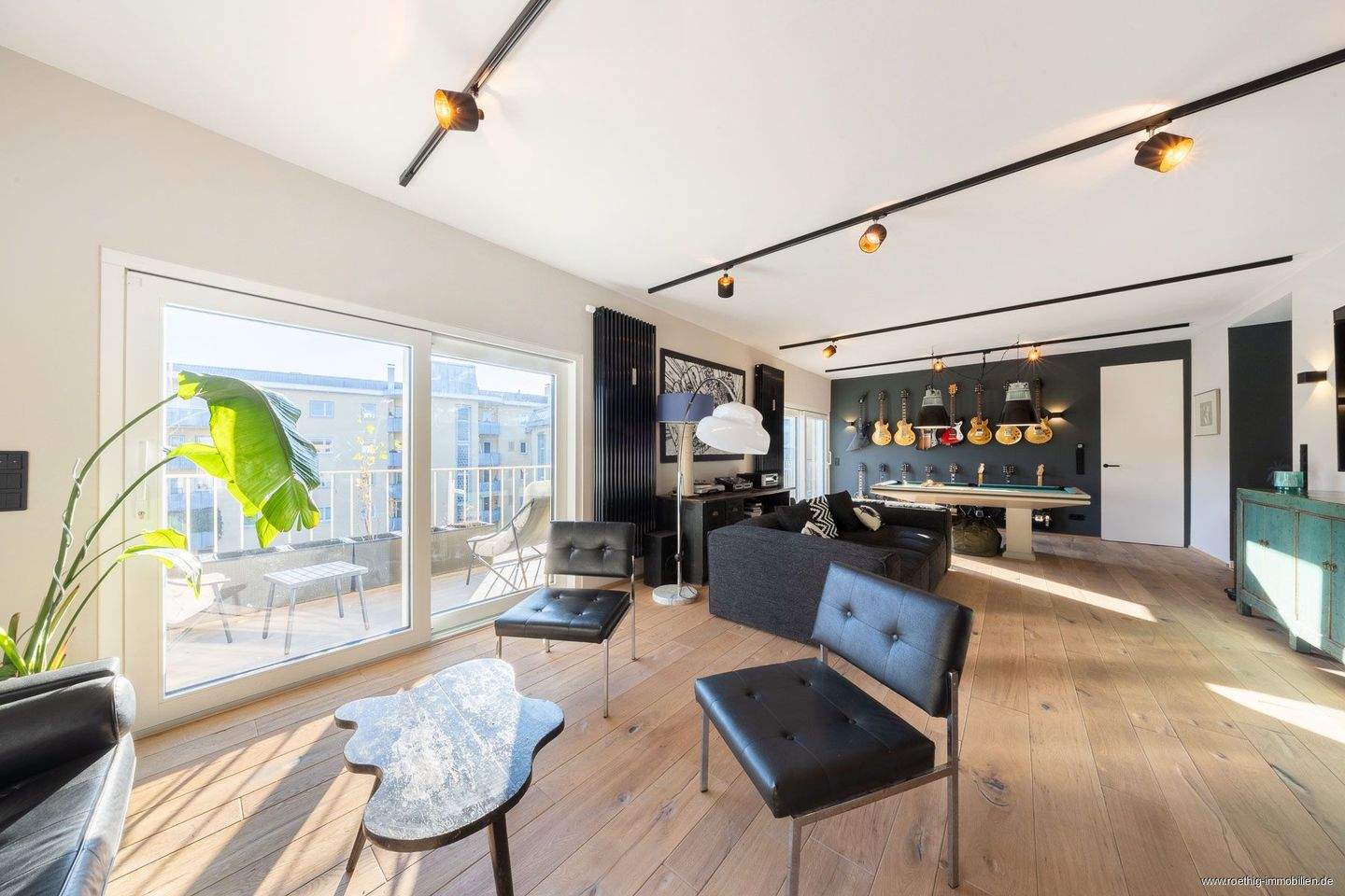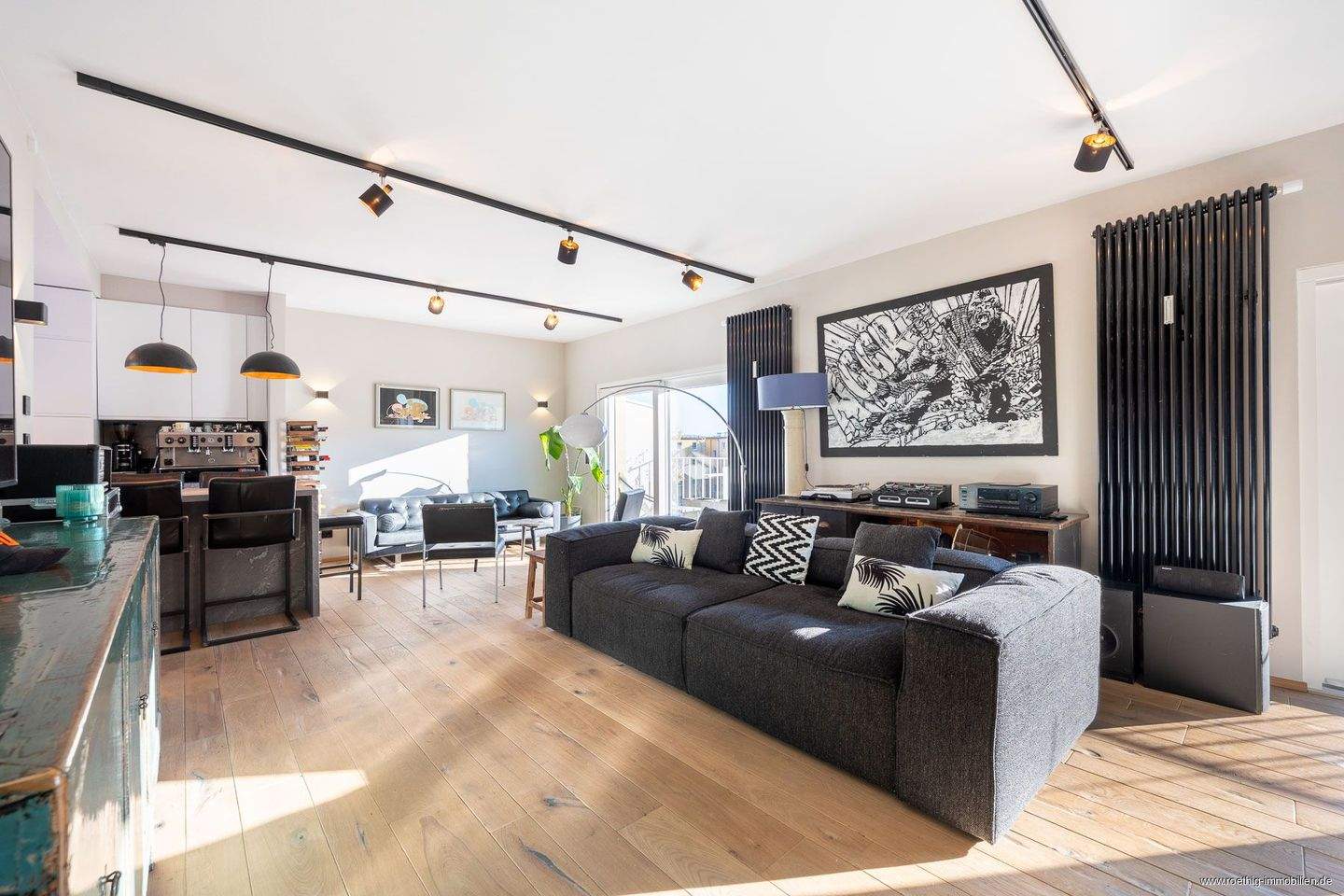 • Blick in den Wohnbereich - Exklusives 4,5-Zimmer-Penthouse über den Dächern Schwabings - moderne Ausstattung, zwei Einzelgaragen, drei traumhafte Dachterrassen & private Sauna