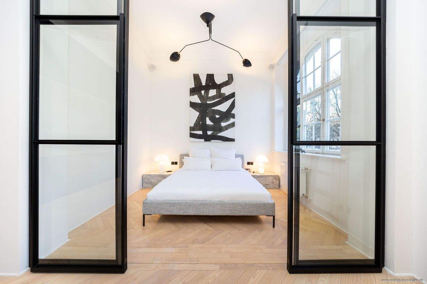 • Schlafzimmer mit Rundbogenfenster - 2 Zimmer Etagenwohnung in München