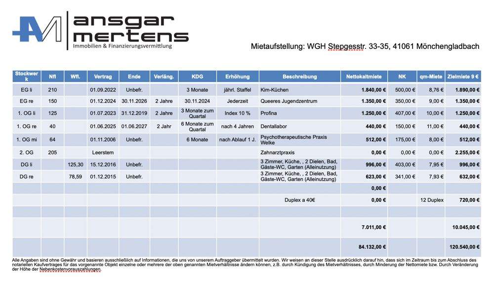 Mietaufstellung -