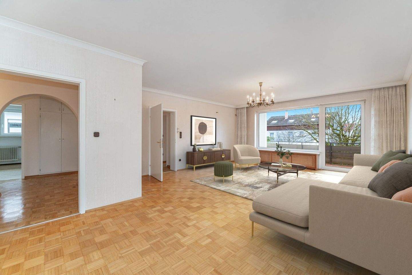 • Wohnzimmer EG mit Staging - 6 Zimmer Mehrfamilienhaus, Wohnhaus zum Kaufen in München