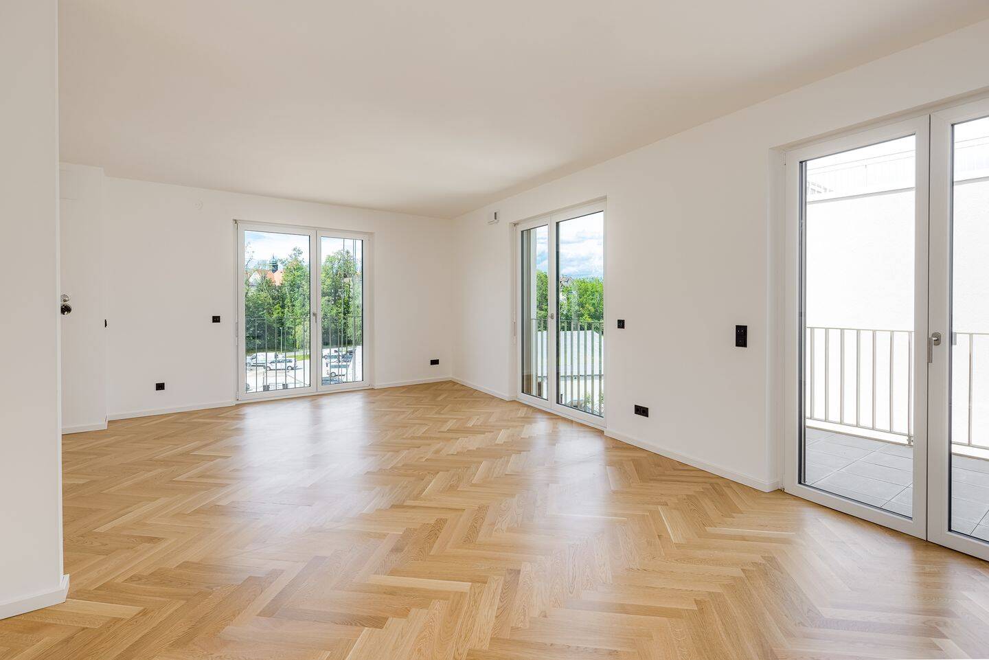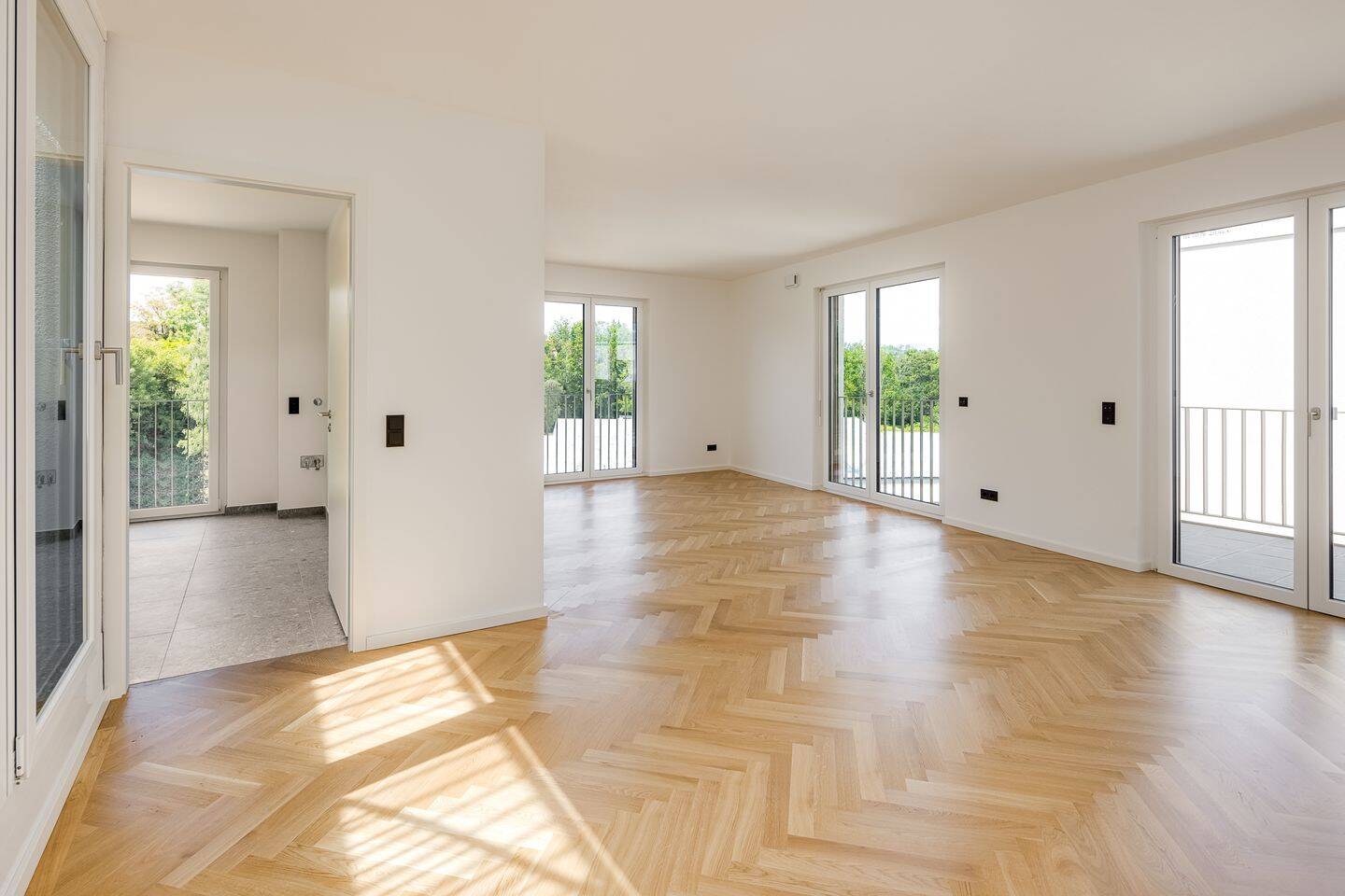 • Wohnbereich mit Fischgrätparkett -