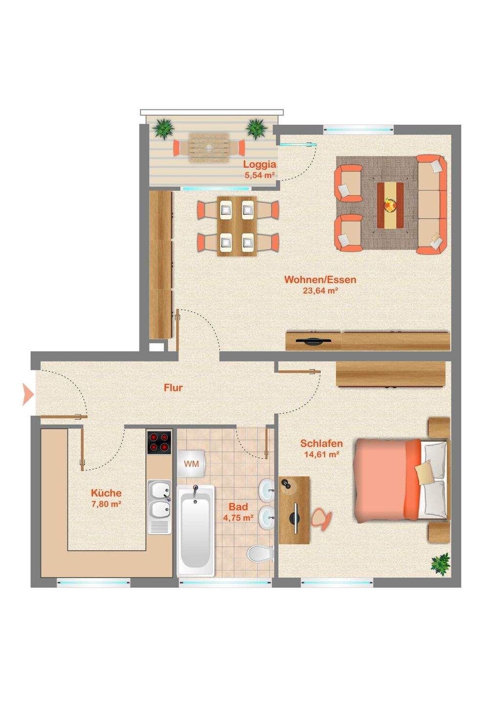 Wohnfläche:ca. 59,00 m²