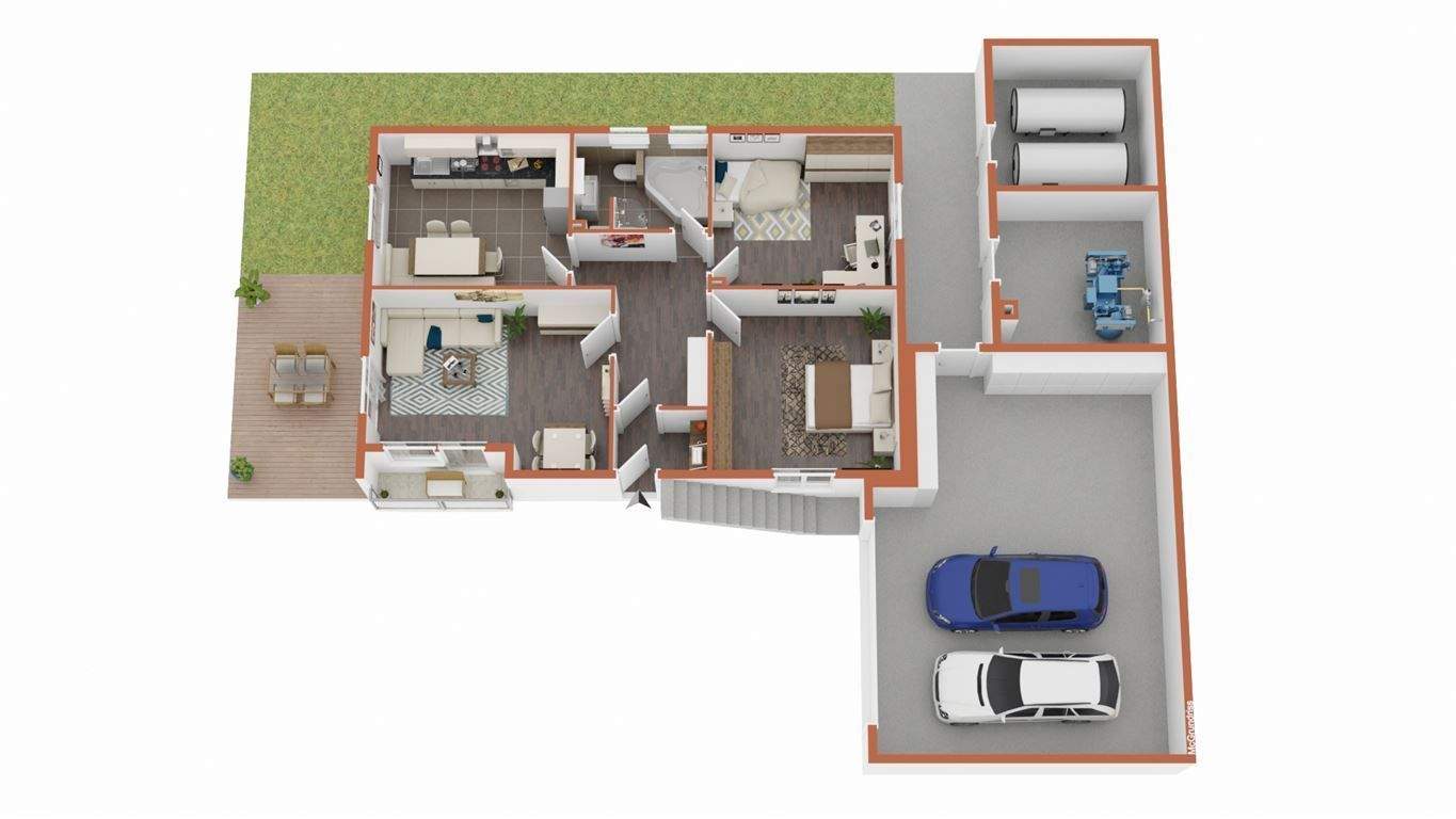 • Grundriss Erdgeschoss mit Garage und Anbau -