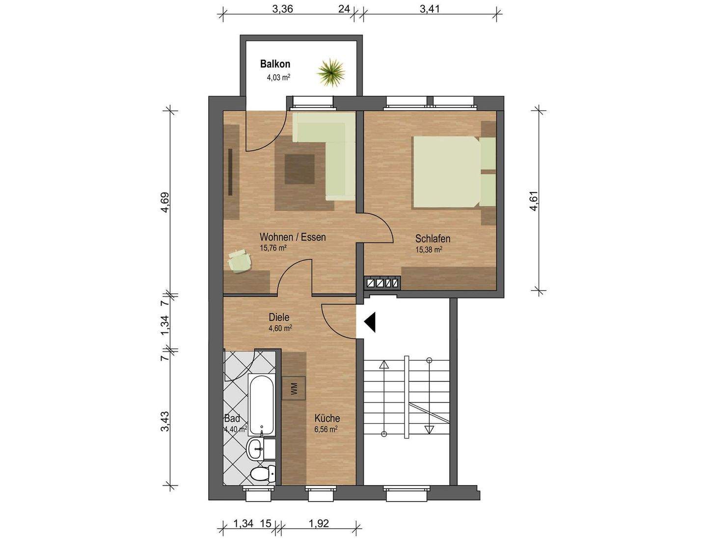 | Wohnfläche: | ca. 48,00 m² |