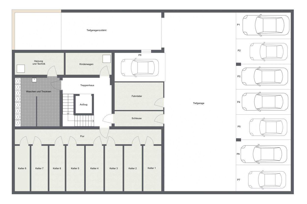 010 - Grundrissplan - Kellergeschoss - Tiefgarage -