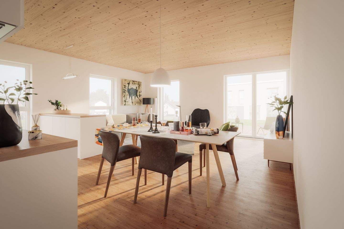 Lichtdurchflutetes Wohnzimmer mit Holzdecke - 4 Zimmer Etagenwohnung in Pentling