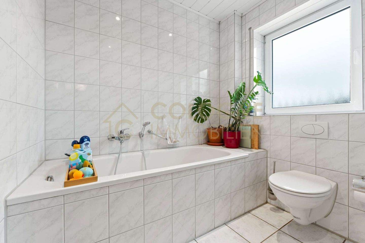 • Lichtdurchflutetes Badezimmer mit Dusche und Badewanne -