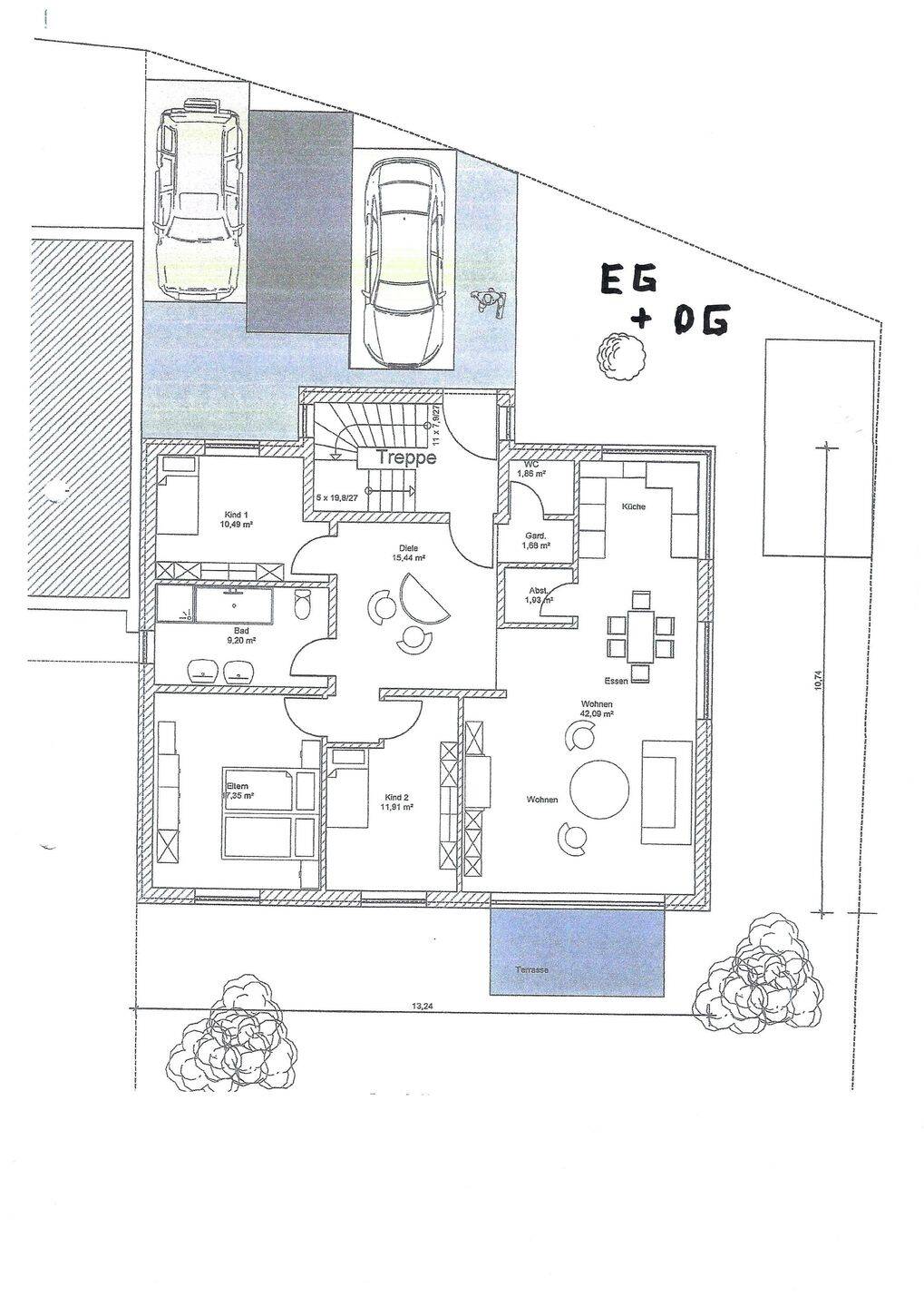 Grundrissentwurf für EG + OG -