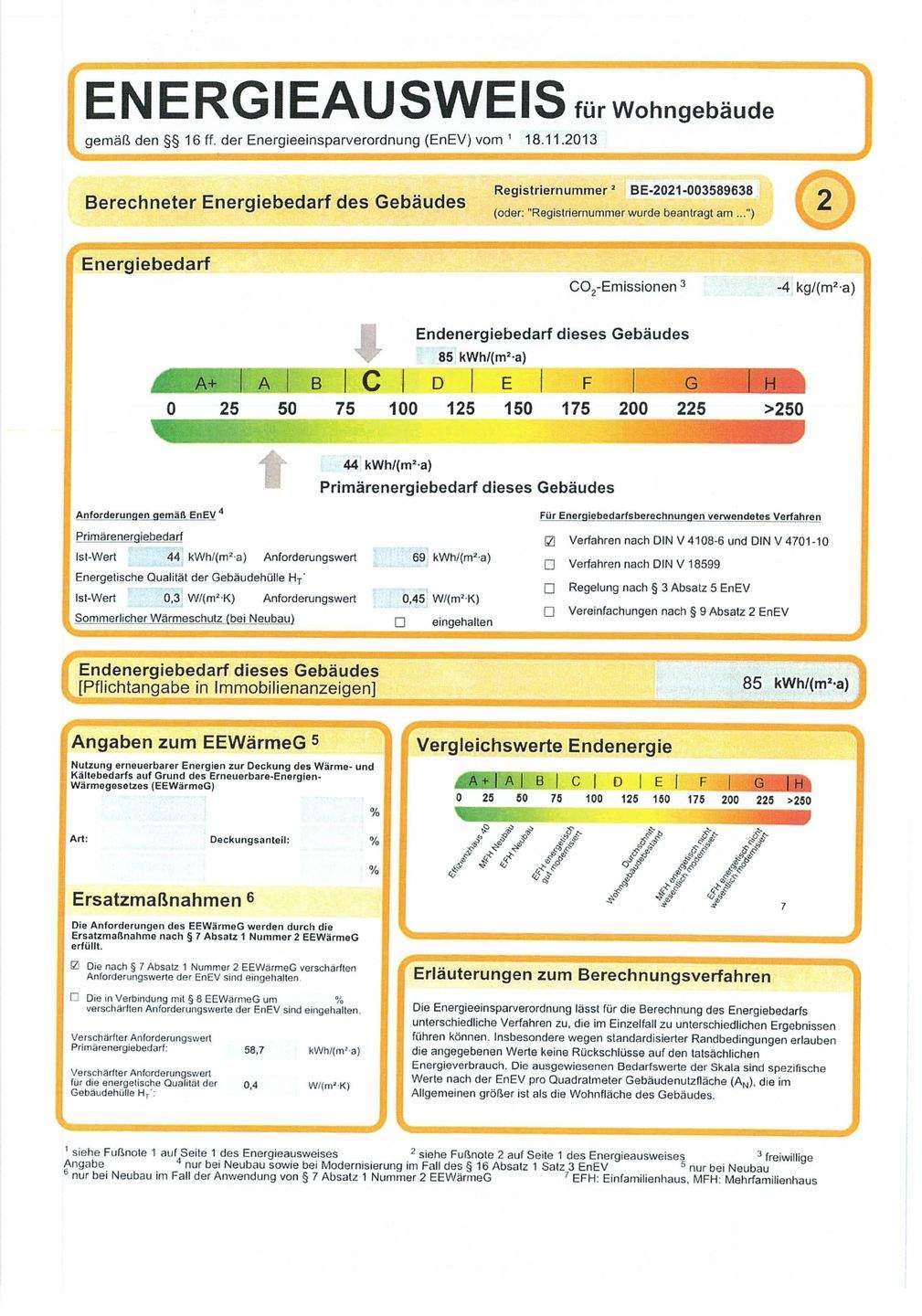 Energieverbrauchkennwert:85 kWh/(m²·a) kWh/(m²·a)