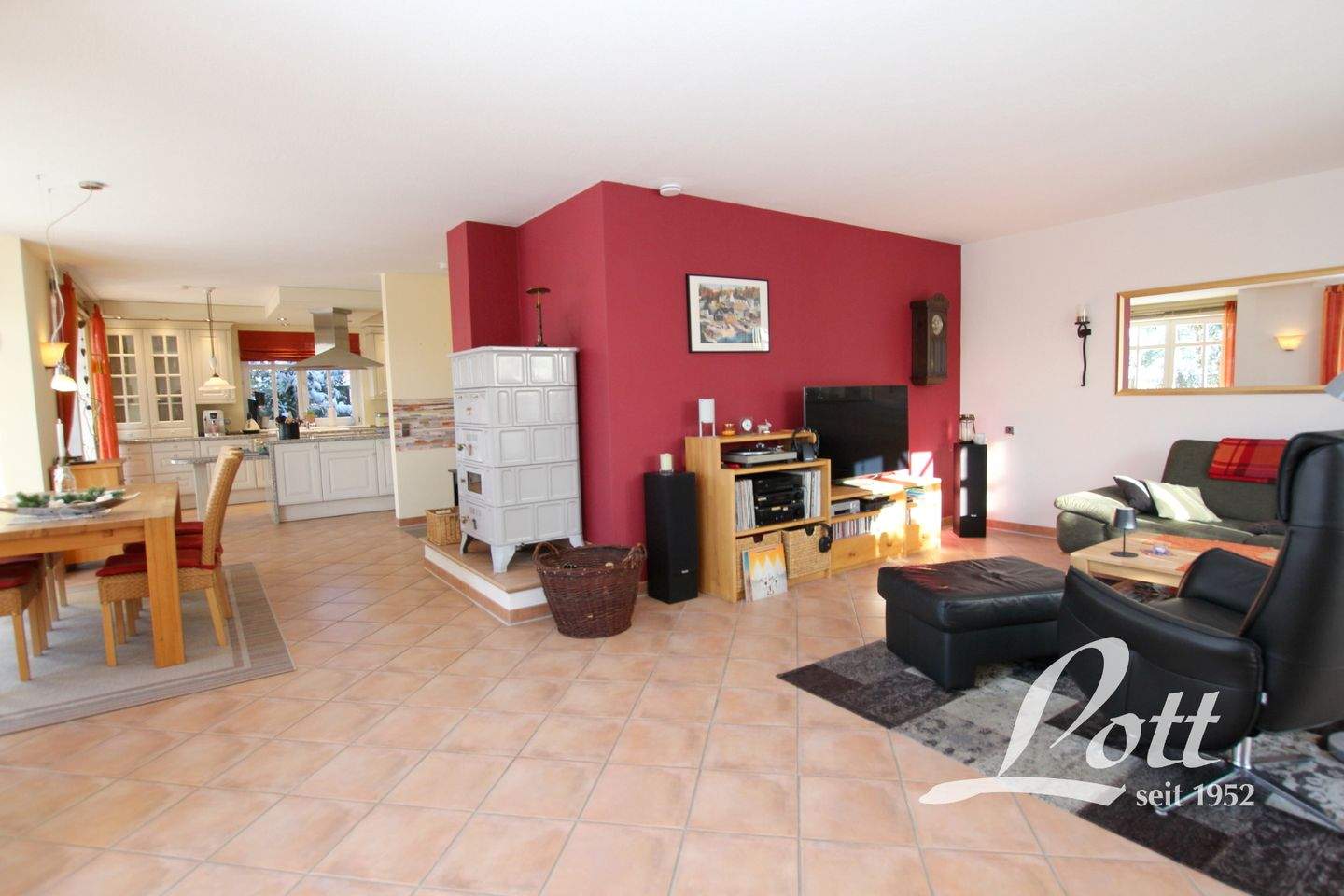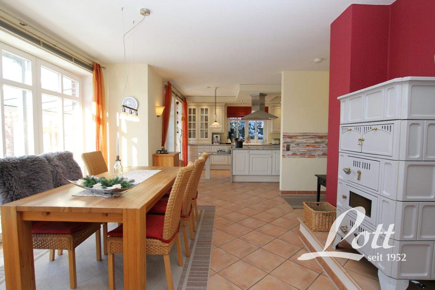 • Essbereich mit Kachelofen -