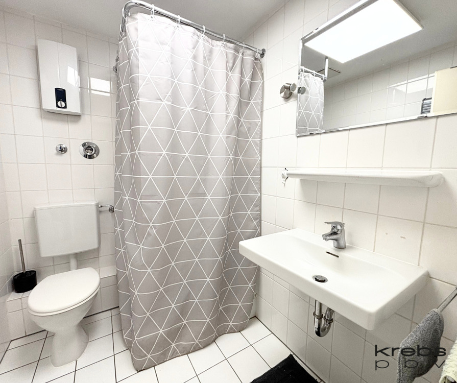 Hell gefliestes Bad mit Dusche - Terrassenwohnung zum Kaufen in Wittlich