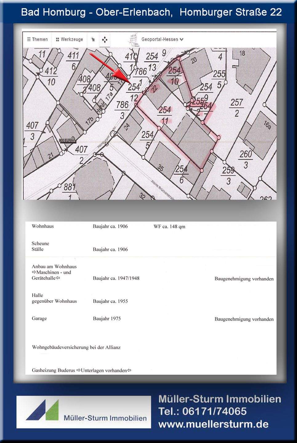 • Bad Homburg Homburger Strasse 22 00 Deckblatt.jpg - Bad Homburg- Ober-Erlenbach: Ehemaliges Bauernhaus mit großer Scheune. Mitten im Ortskern.