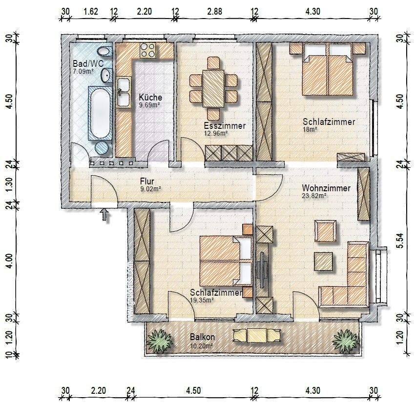 • Einrichtungsbeispiel Wohnzimmer EG -