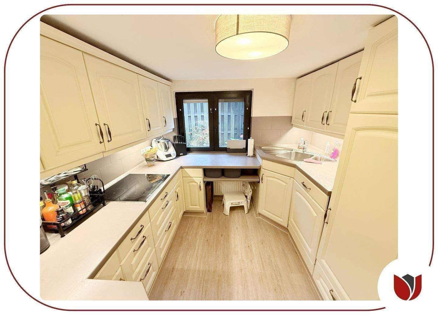 • Küche mit heller Einbauküche -