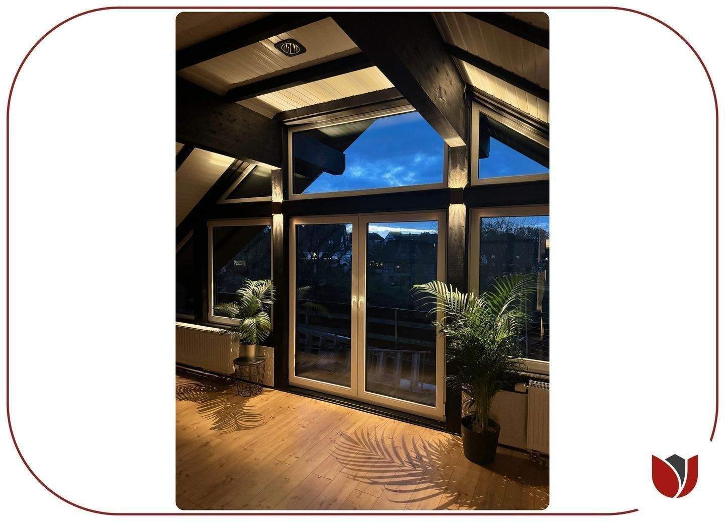 • Giebelzimmer schöne Atmosphäre bei Nacht -