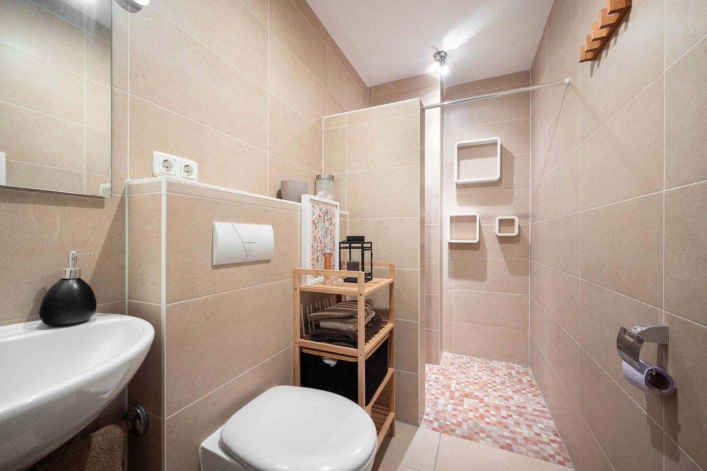 • Bad mit großformatigen Fliesen -