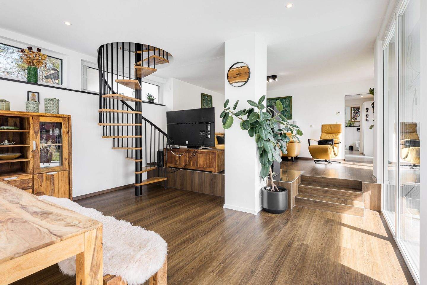 • Ess-Wohnbereich mit Treppenaufgang -