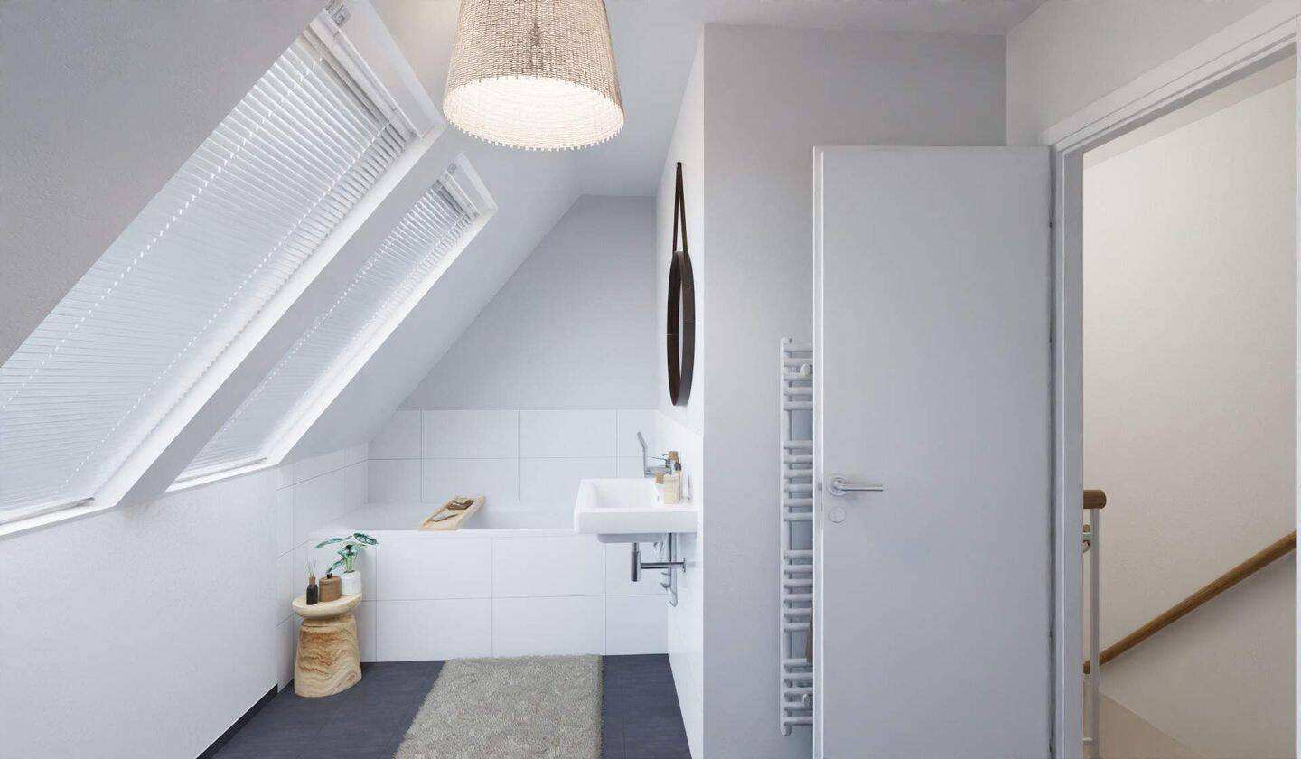 • Tageslichtbad mit Badewanne und bodengleicher Dusche -