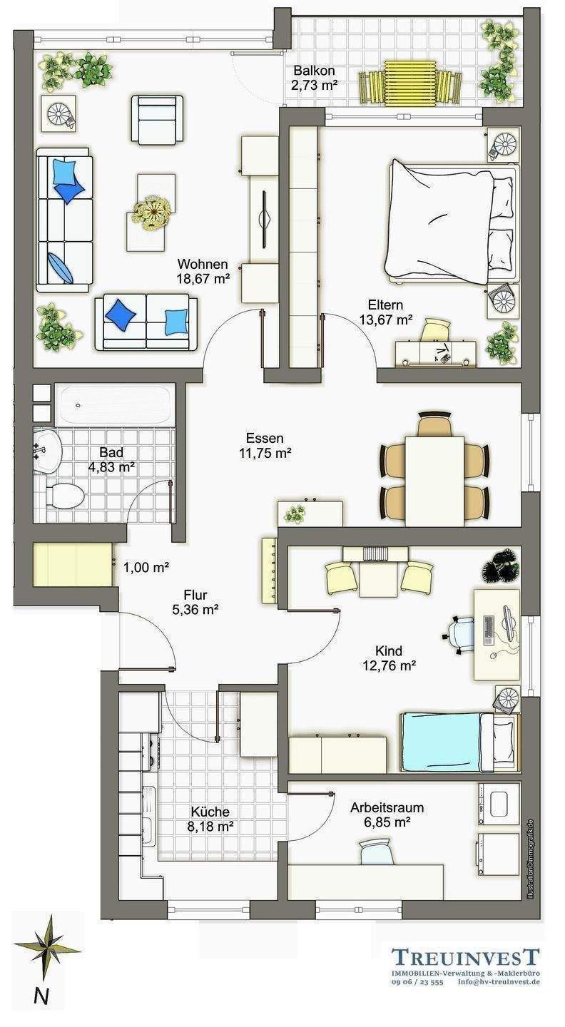 Zimmeranzahl :3 Wohnfläche :ca. 84,00 m² Baujahr :1973 Frei ab :01.05.2026 Etage :2 Balkon :