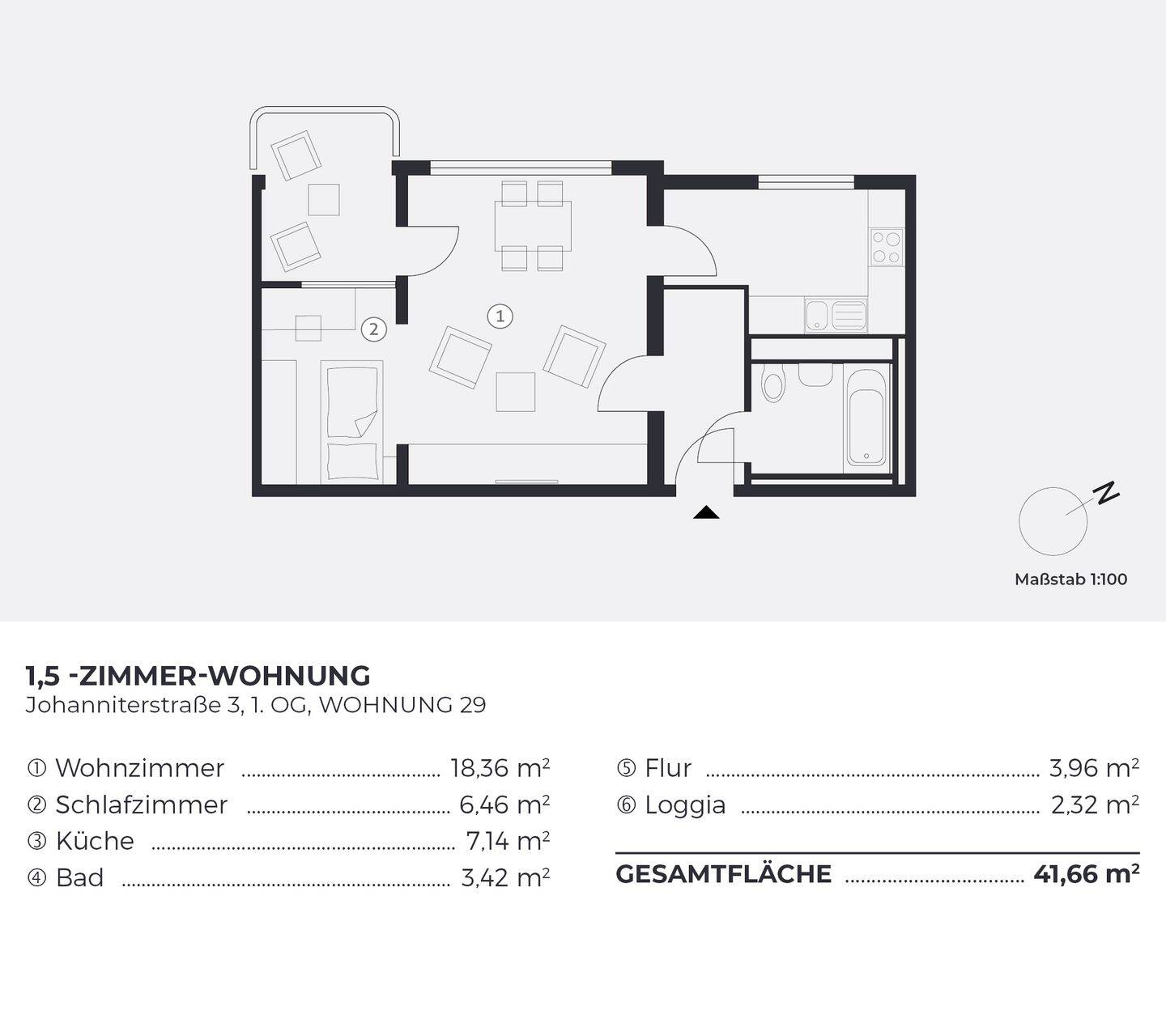 Wohnfläche:ca. 41,70 m²