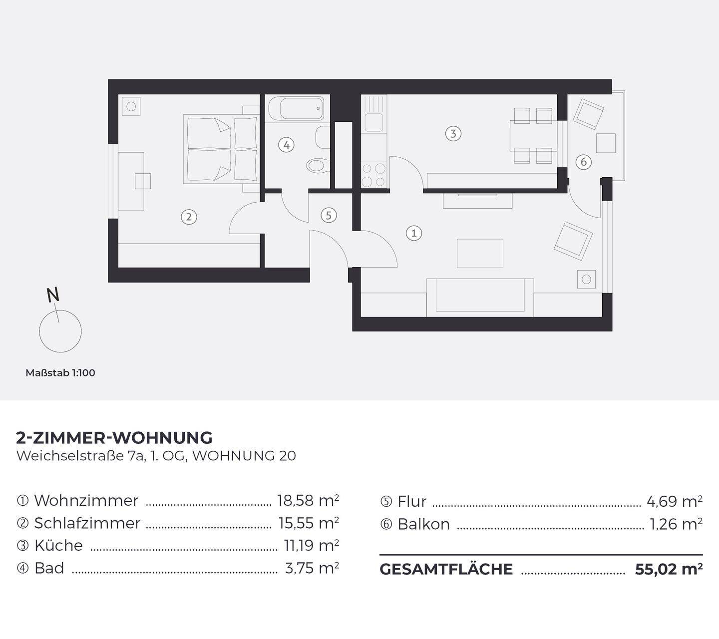 Wohnfläche:ca. 55,00 m²