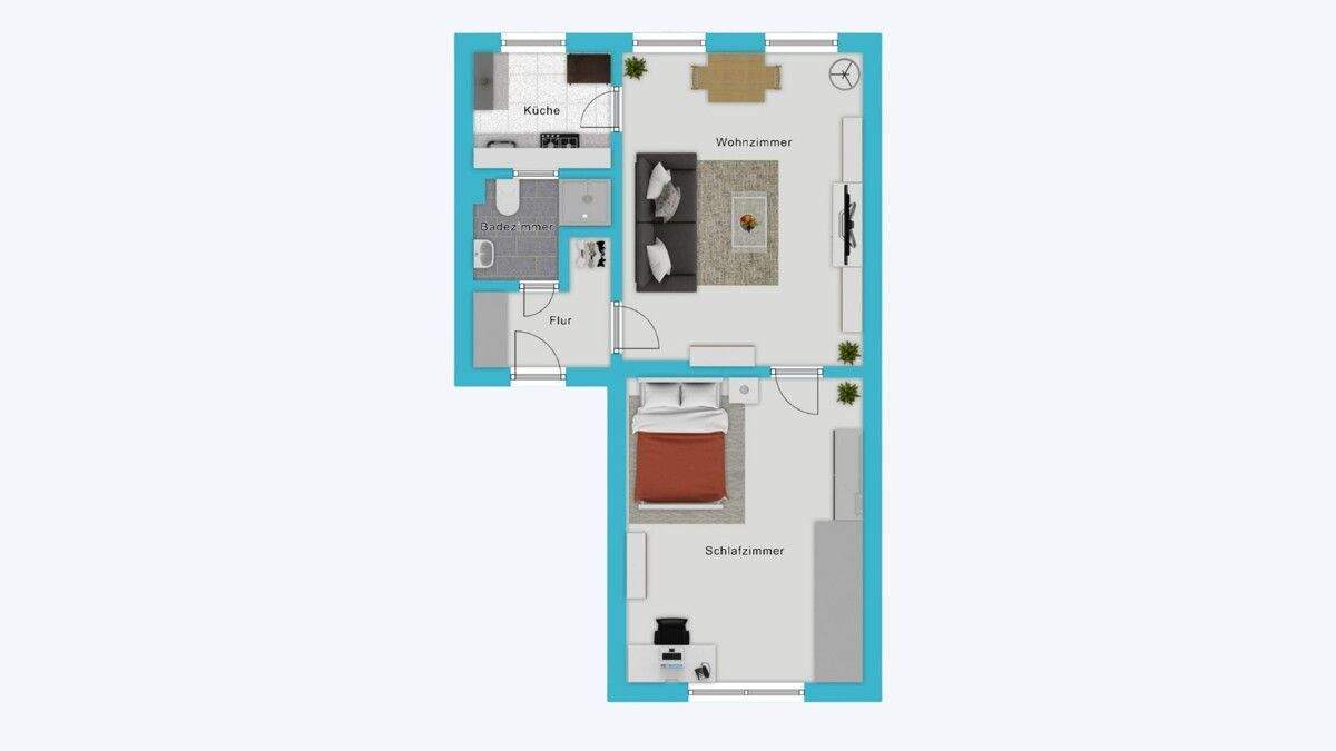 • Wohnzimmer (Typ 47 m²) - 1 Zimmer Mehrfamilienhaus, Wohnhaus zum Kaufen in Aachen