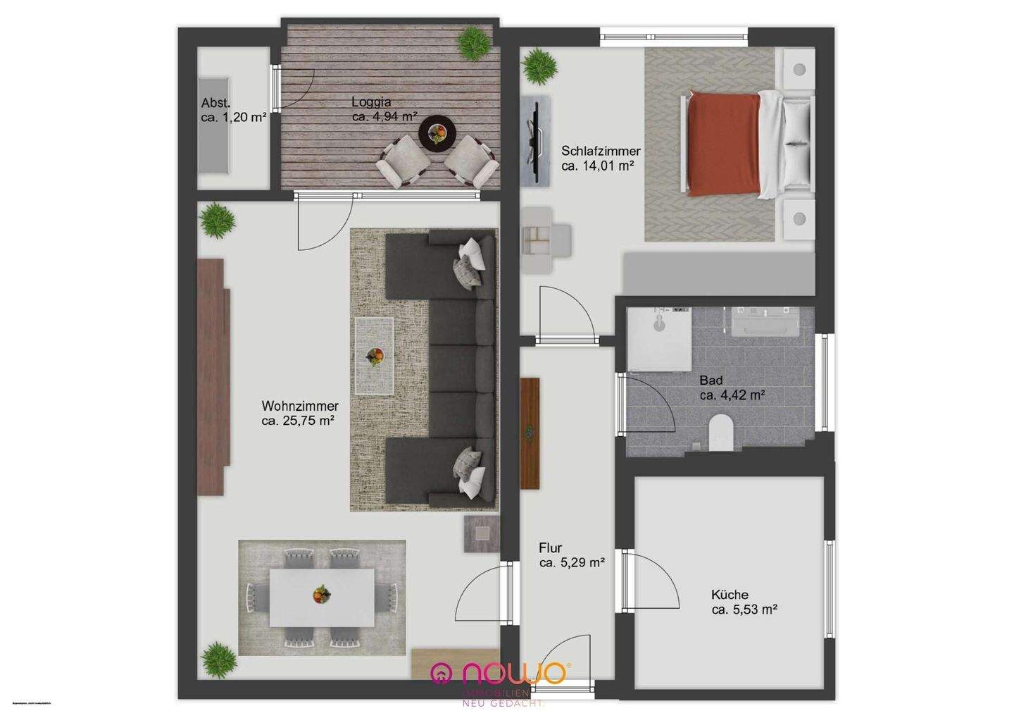 | Wohnfläche: | ca. 57,50 m² |