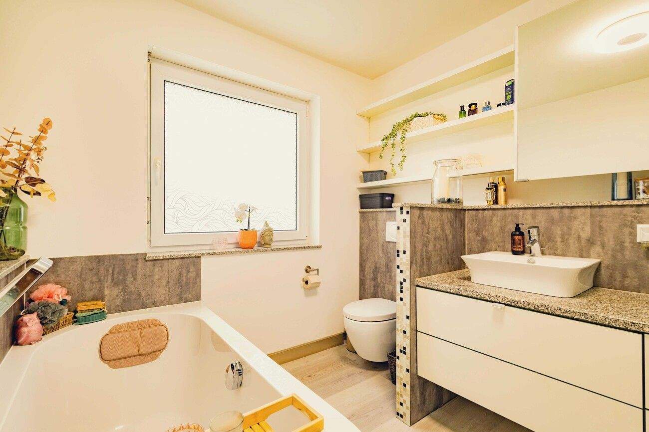 • Modernes Tageslichtbad mit separater Badewanne -