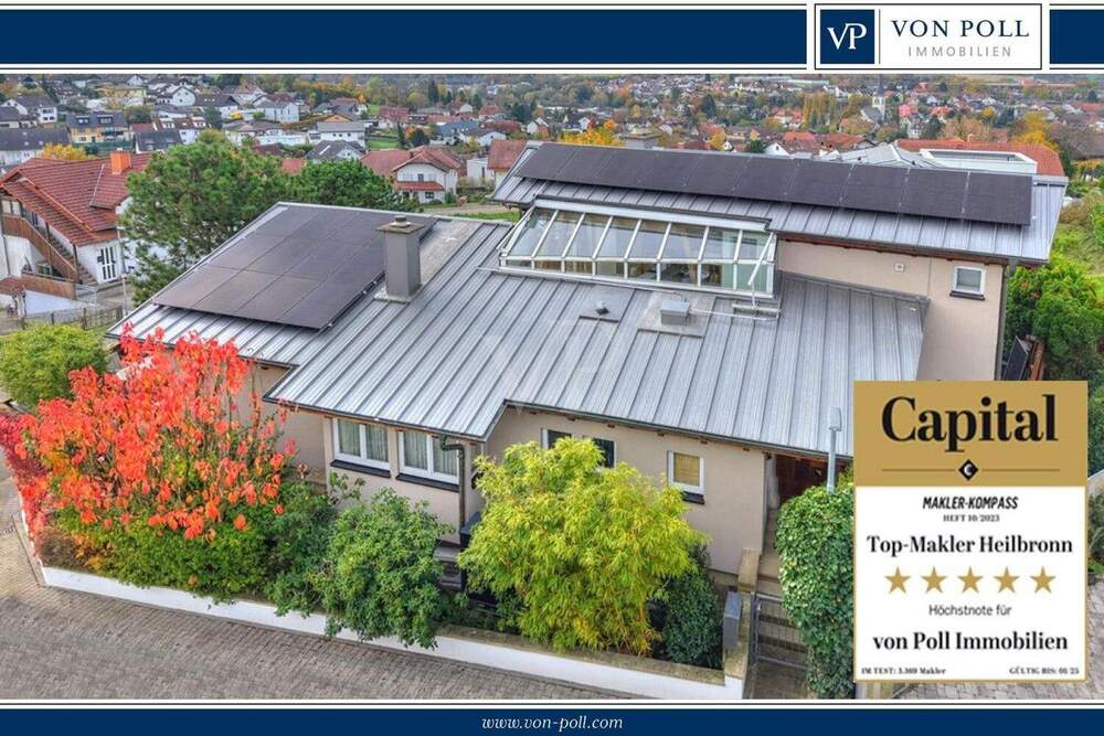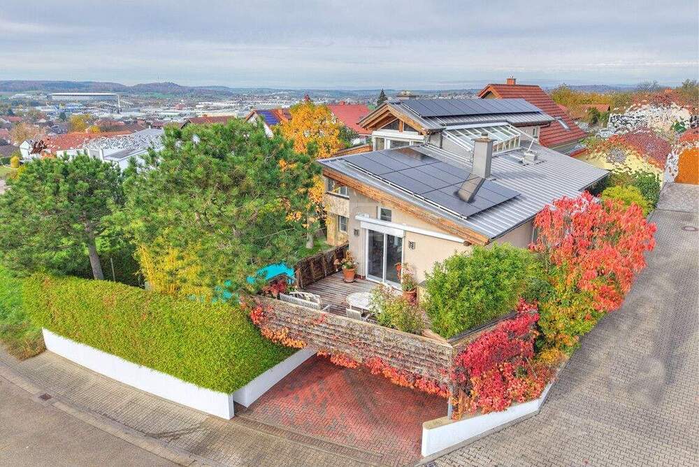 Sie befinden sich hier: Ein Zuhause der Extraklasse - Architektenhaus mit PV, Wärmepumpe, Pool, Sauna und traumhaftem Fernblick in Sinsheim / Steinsfurt - 253VEU7V9L1E | 1A-Immobilienmarkt.de