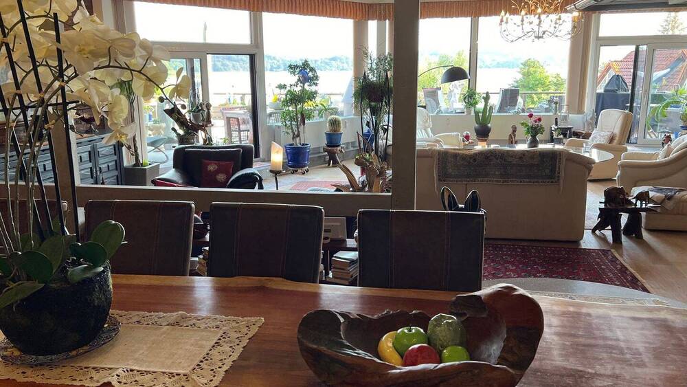 Exklusives Wohnzimmer mit fantastischem Seeblick - Letzte Einheit: Unikat in der Ostseeregion: Herrliche großzügige Wohnung mit einmaligem Seeblick. Große Terrasse, Schwimmbad, Sauna und Badesteg.