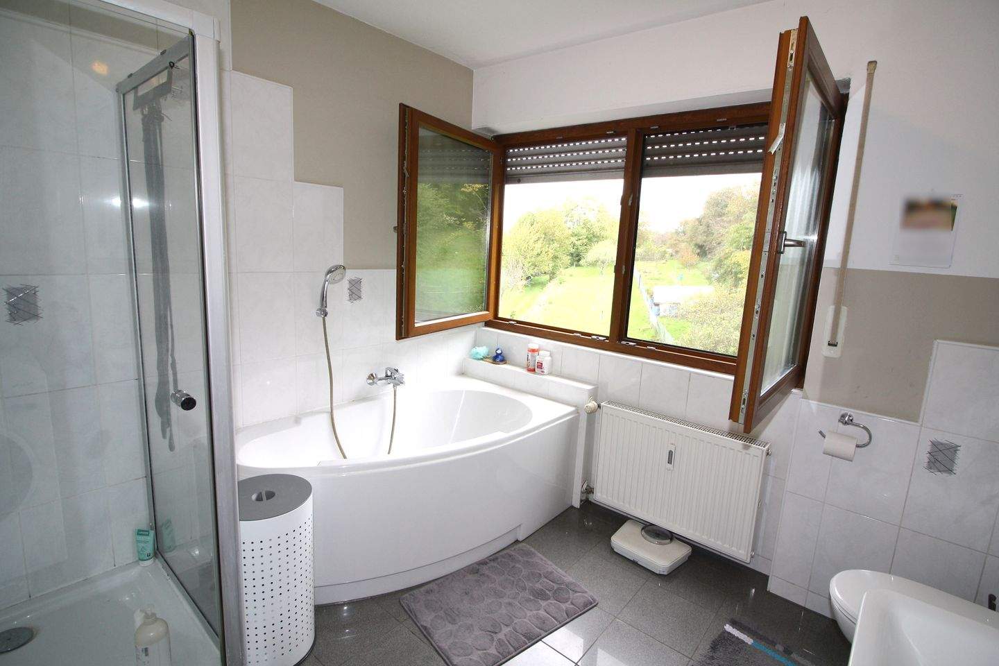 • Badezimmer mit Blick in die Natur -
