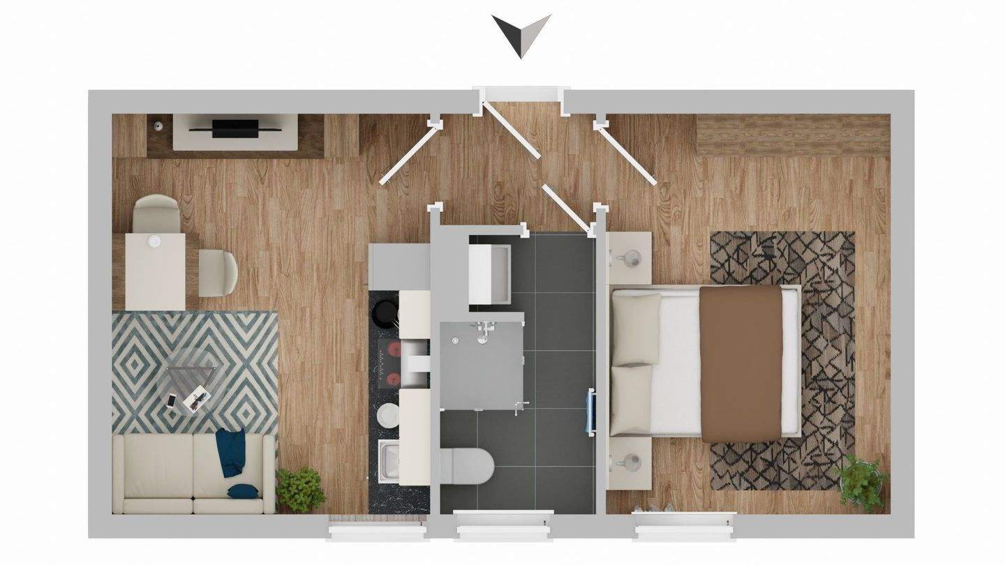• Wohn-/Esszimmer mit offener Küche - Etagenwohnung mit 32,00 m² in Lübeck zum Kaufen