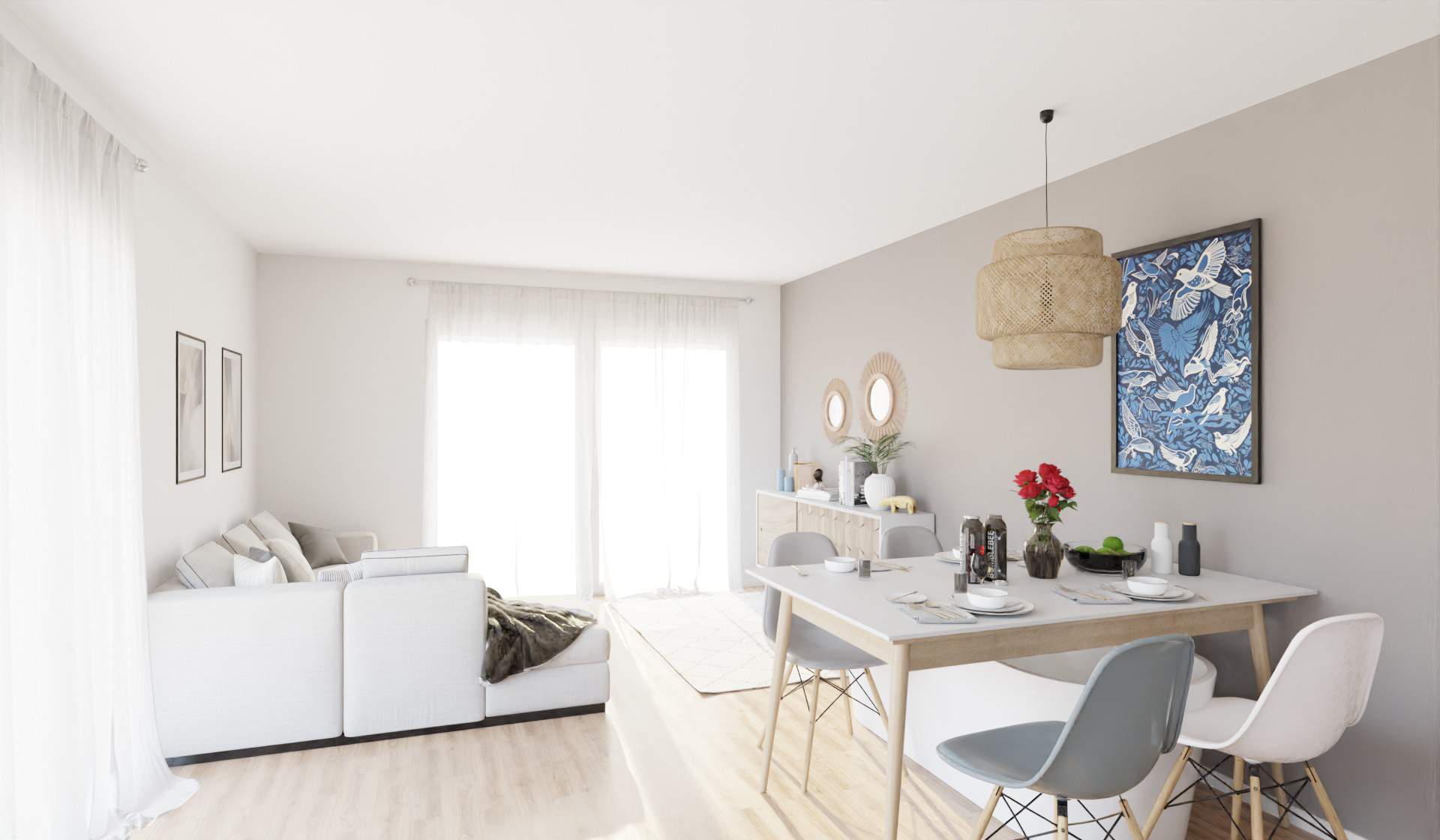 Lichtdurchfluteter Wohnbereich dank bodentiefer Fenster -