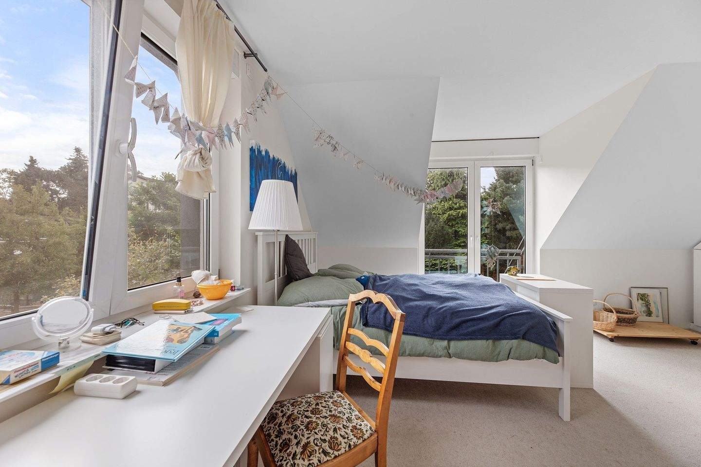 Sonnendurchflutetes Kinderzimmer mit großen Panoramafenstern -