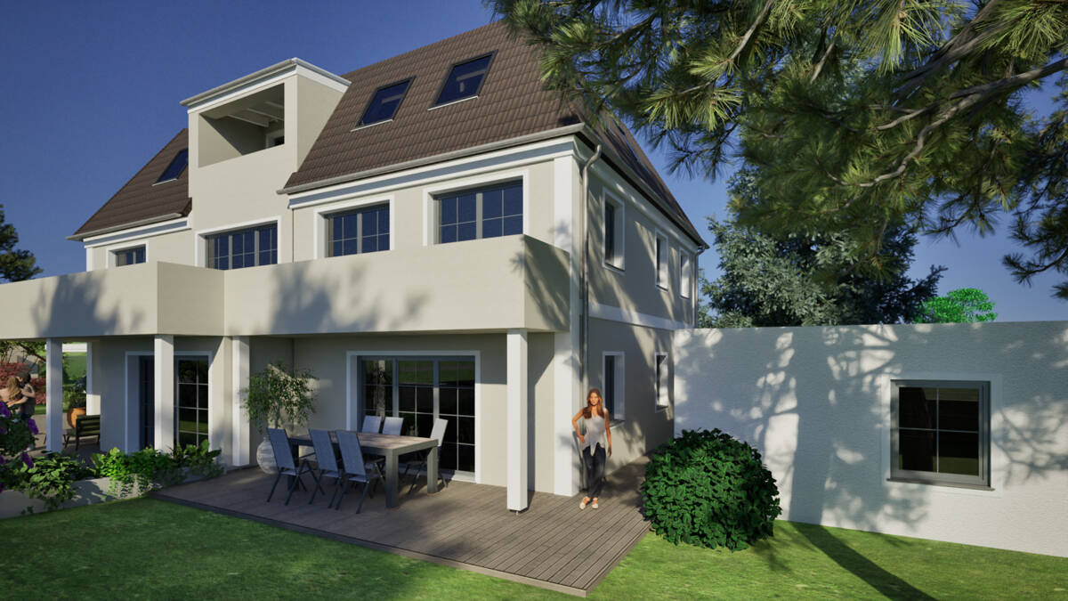 • Südwestansicht - 6 Zimmer Doppelhaushälfte in Neubiberg