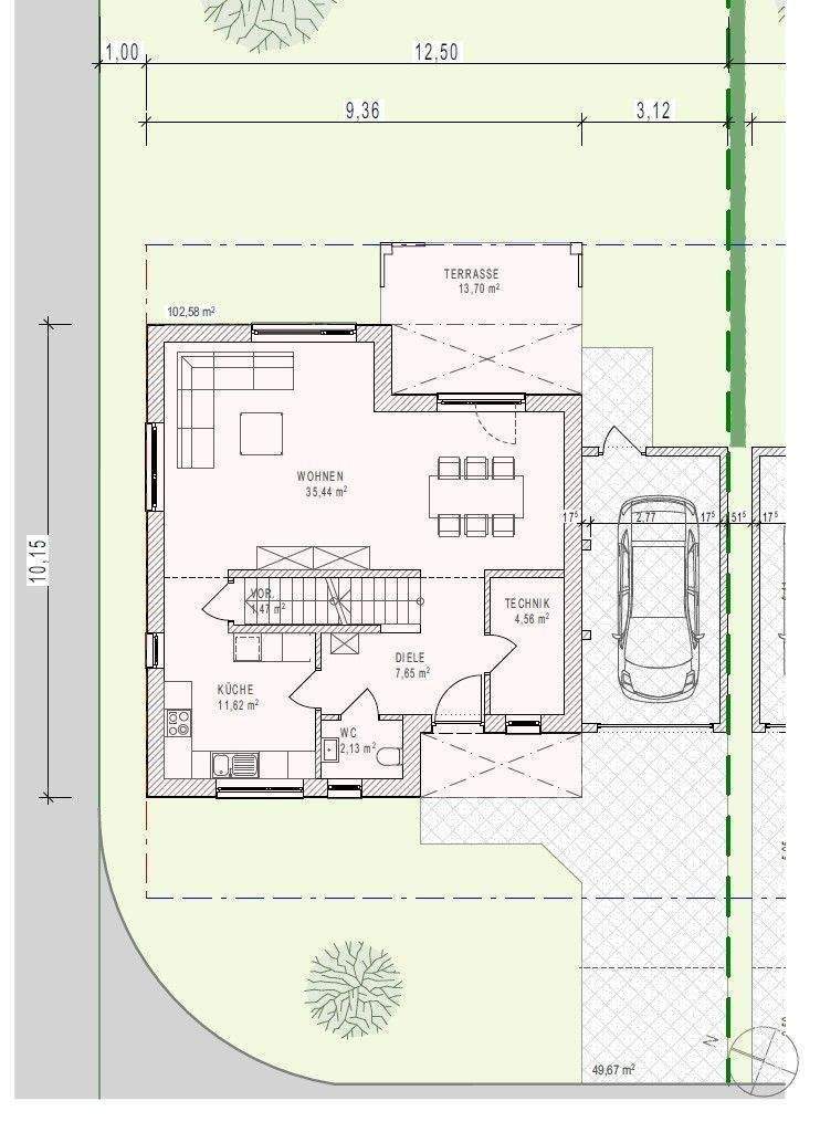 Freistehendes EFH Grundstück A oben links -