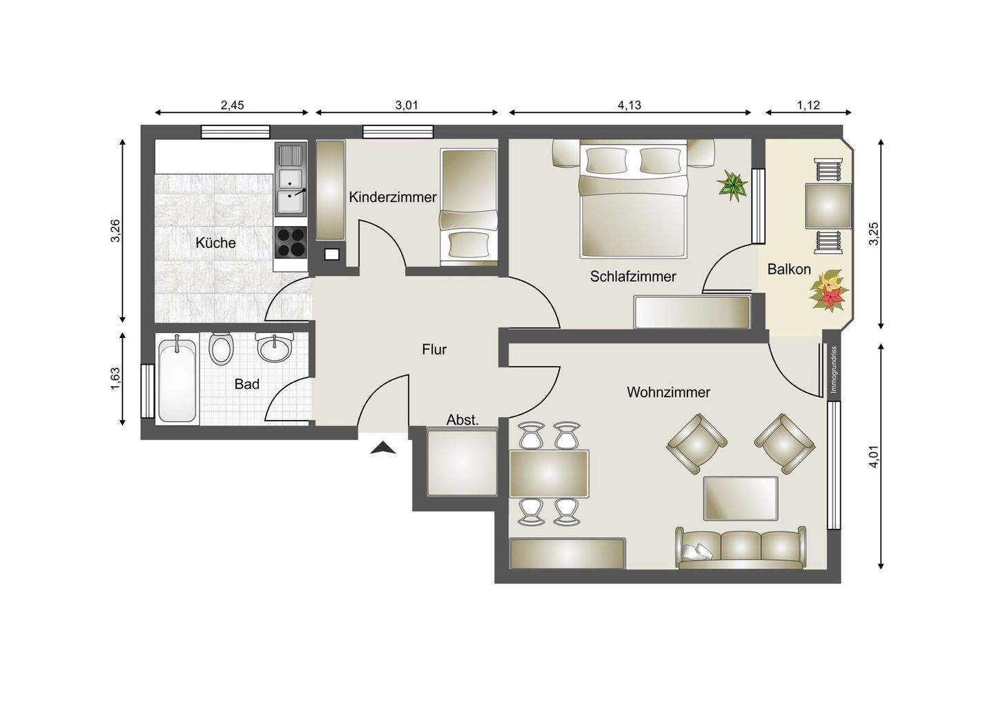 • Durchdachter Grundriss einer 3-Zimmer-Wohnung – ideal für Paare oder als Kapitalanlage. -