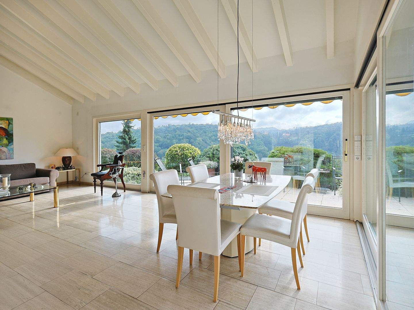 Heller, lichtdurchfluteter Essbereich mit Blick auf die sonnige Terrasse - Architektur trifft Wohnkomfort - einzigartiges Einfamilienhaus mit Sonnenterrasse und Waldpanorama