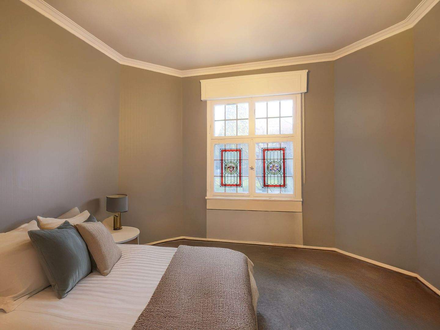Geräumiges Schlafzimmer mit großen Fenstern und historischem Charakter (Möblierung KI-generiert) - 9 Zimmer Mehrfamilienhaus, Wohnhaus in Ludwigsburg