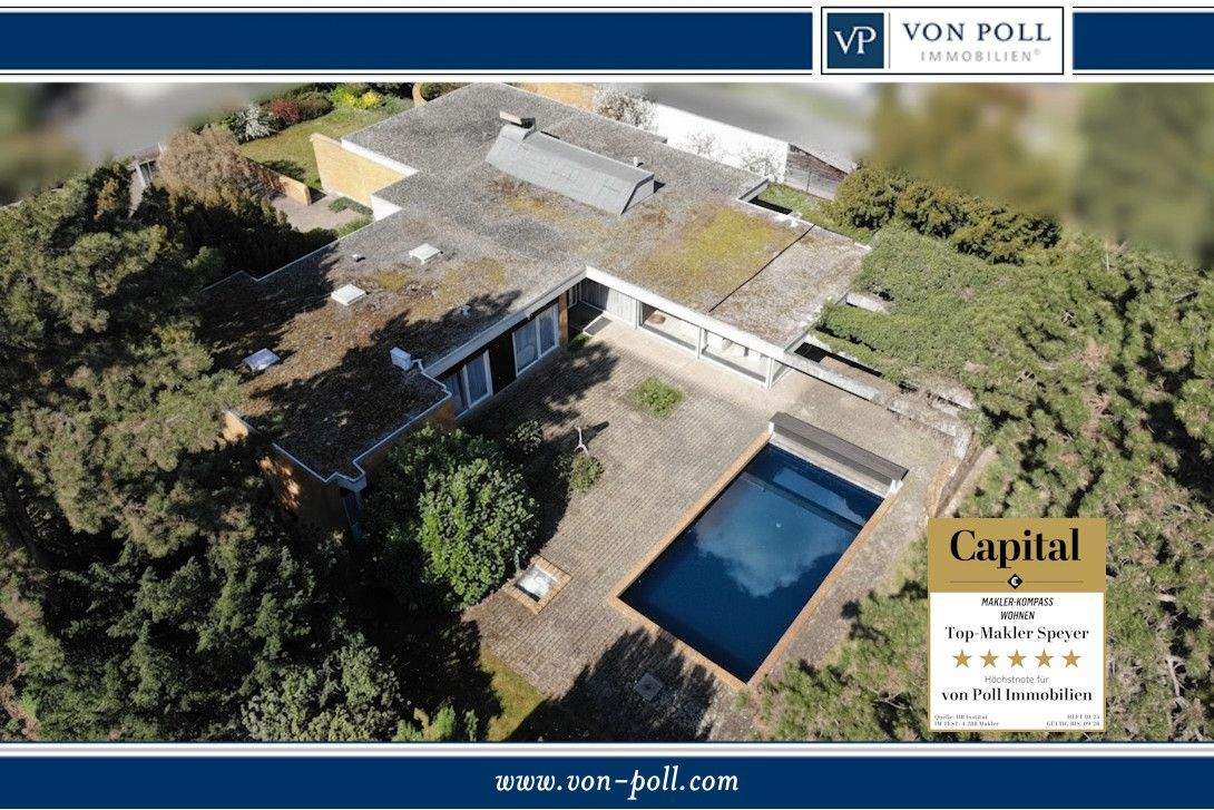 • Rückansicht mit Pool - 9 Zimmer Bungalow zum Kaufen in Dannstadt-Schauernheim