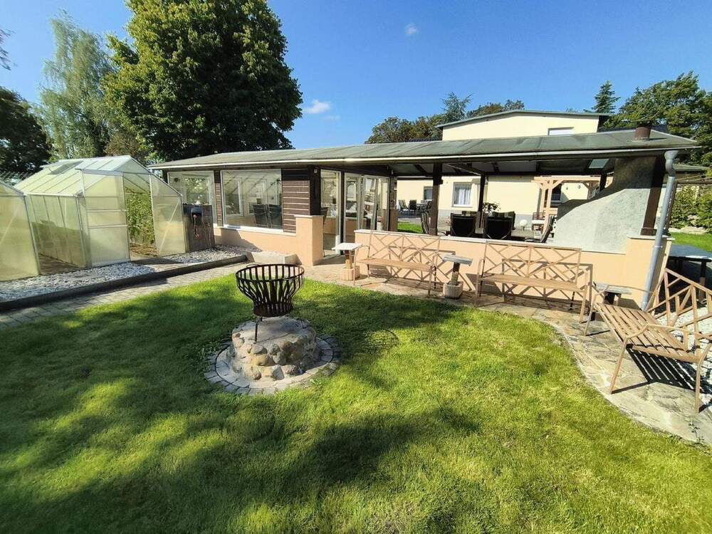 • Terrasse neben Wintergarten - sehr ruhiges Doppelhaus für 2 Familien, getrennte Eingänge, großes Grundstück, Pool und top Zustand in Leipzig