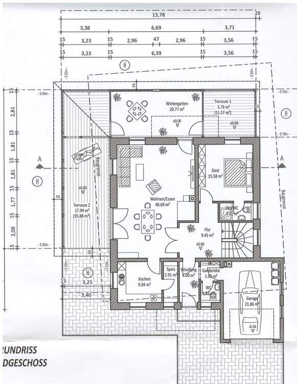 • 1520-Draufsicht-schraffiert - 6 Zimmer Mehrfamilienhaus, Wohnhaus zum Kaufen in Rinchnach