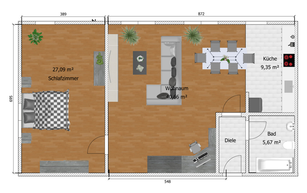 Grundriss ETW 14.png - helle, moderne 2-Raum-DG-Wohnung mit offener Wohnküche, unbefristet vermietet