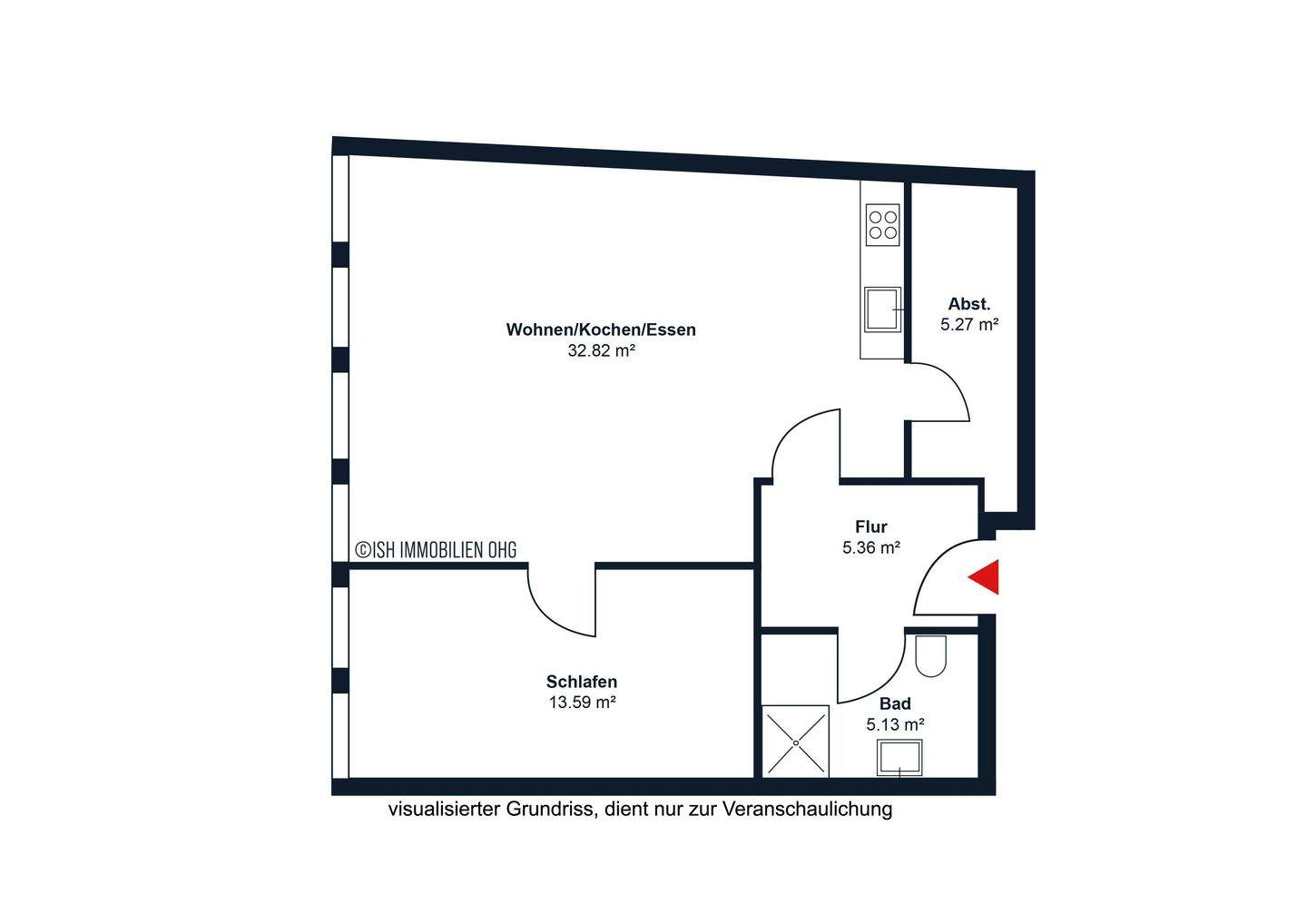 Grundriss - 2 Zimmer Etagenwohnung zum Kaufen in Stade