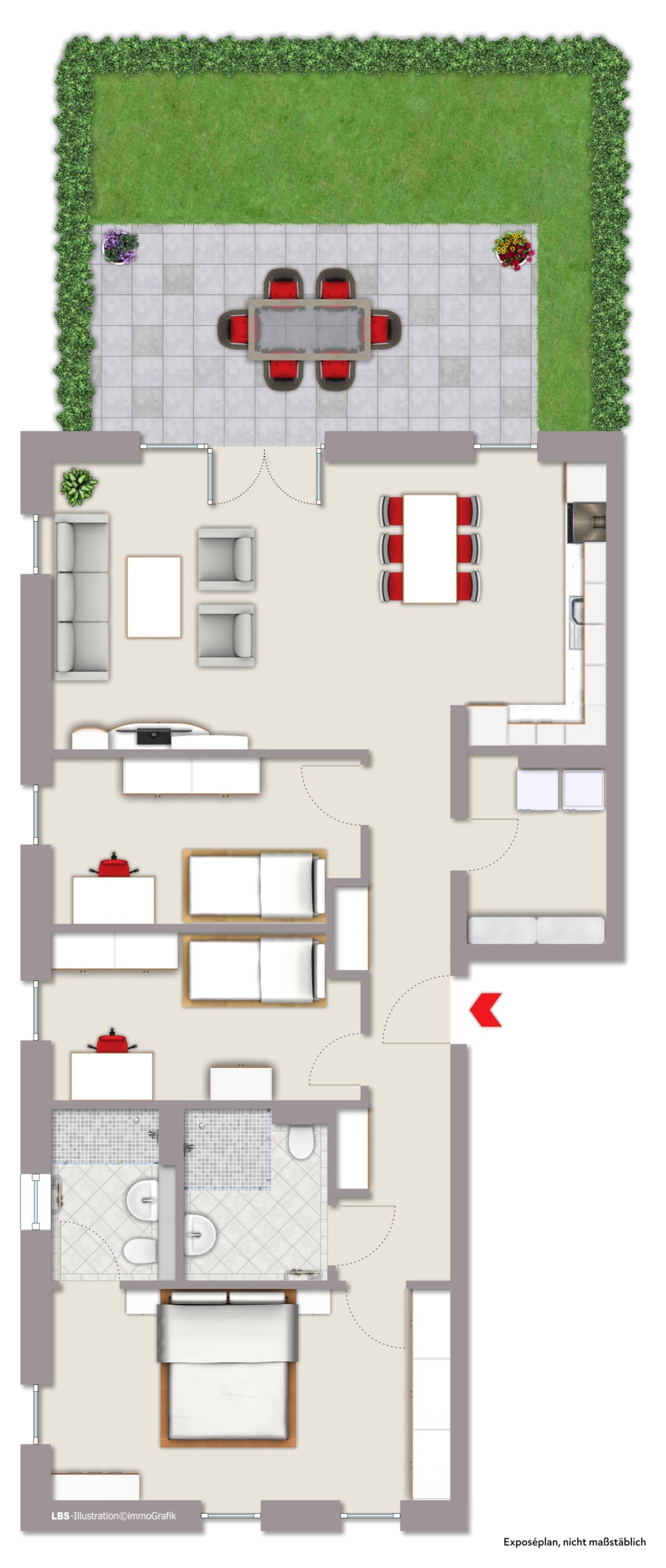 • Außenansicht Eingang - Vermietete 4-Zimmer-Erdgeschosswohnung mit großer Terrasse